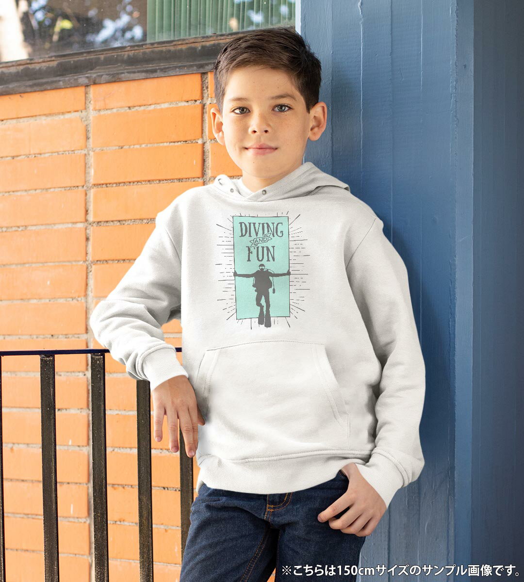パーカー キッズ ホワイト グレー ブラック デザイン 110 130 150 parker hooded sweatshirt フーディ 白 黒 灰色 子供 男の子 女の子 010971 ダイビング 海 英語