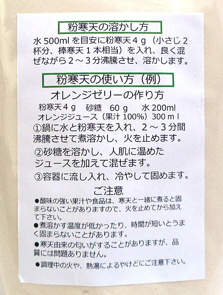 不純物のない100%純粋な粉寒天です。