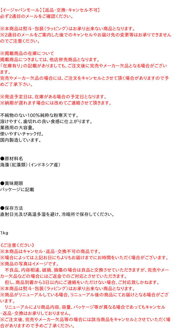 [関連キーワード:食品 粉類 かんてん カンテン 粉末 寒天寄せ 寒天ゼリー 業務用]まとめ買いはコチラ(激安ケース) >>【イージャパンショッピングモール】内のみのお買い物は、送料一律でどれだけ買っても同梱する事が出来ます。